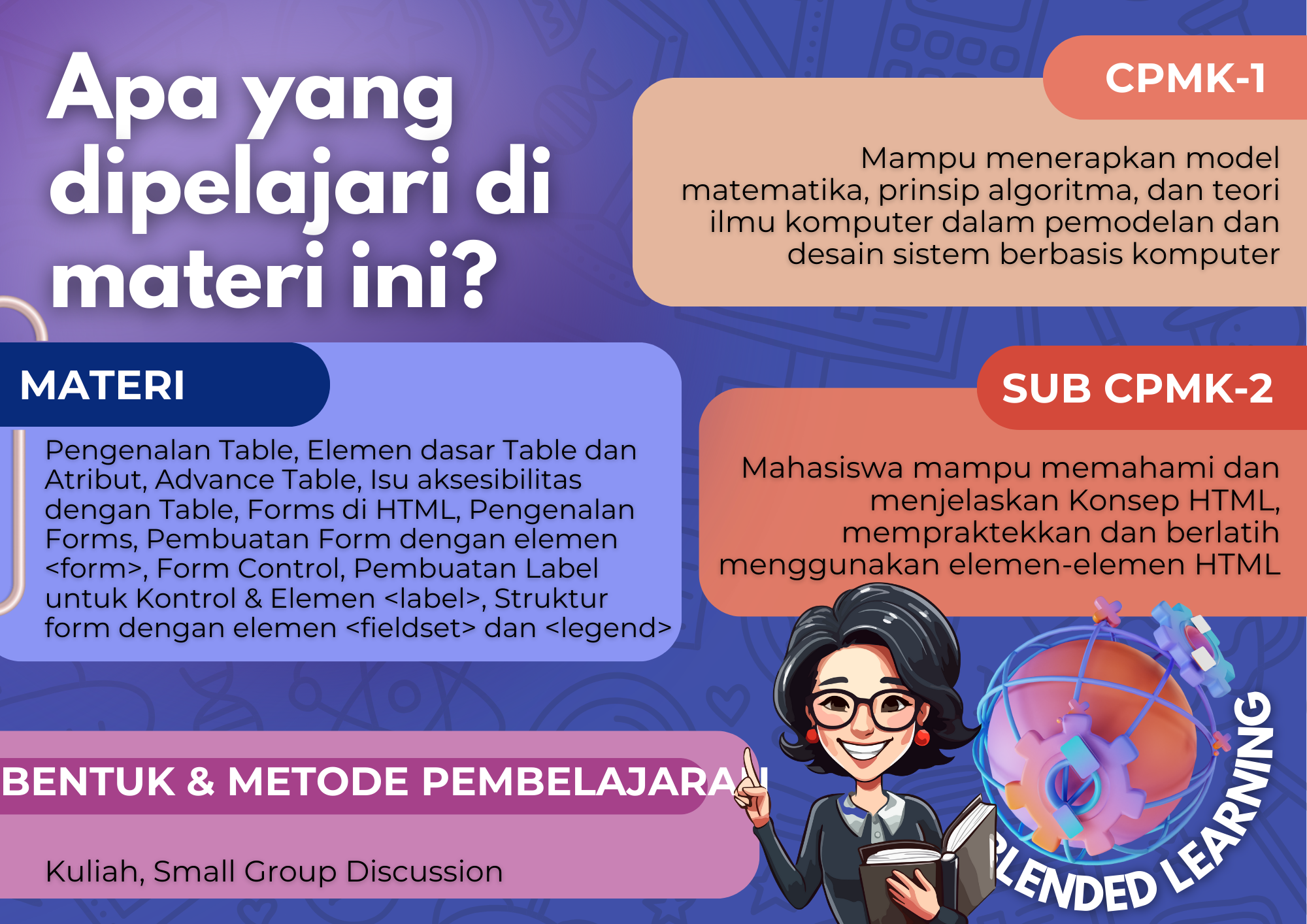 Diskusi kelompok kecil ini memungkinkan mahasiswa untuk bertanya dan memahami konsep Tables & Forms dengan lebih mendalam. Dengan berbagi pemikiran dan interpretasi, setiap mahasiswa dapat memperoleh wawasan yang lebih luas.
