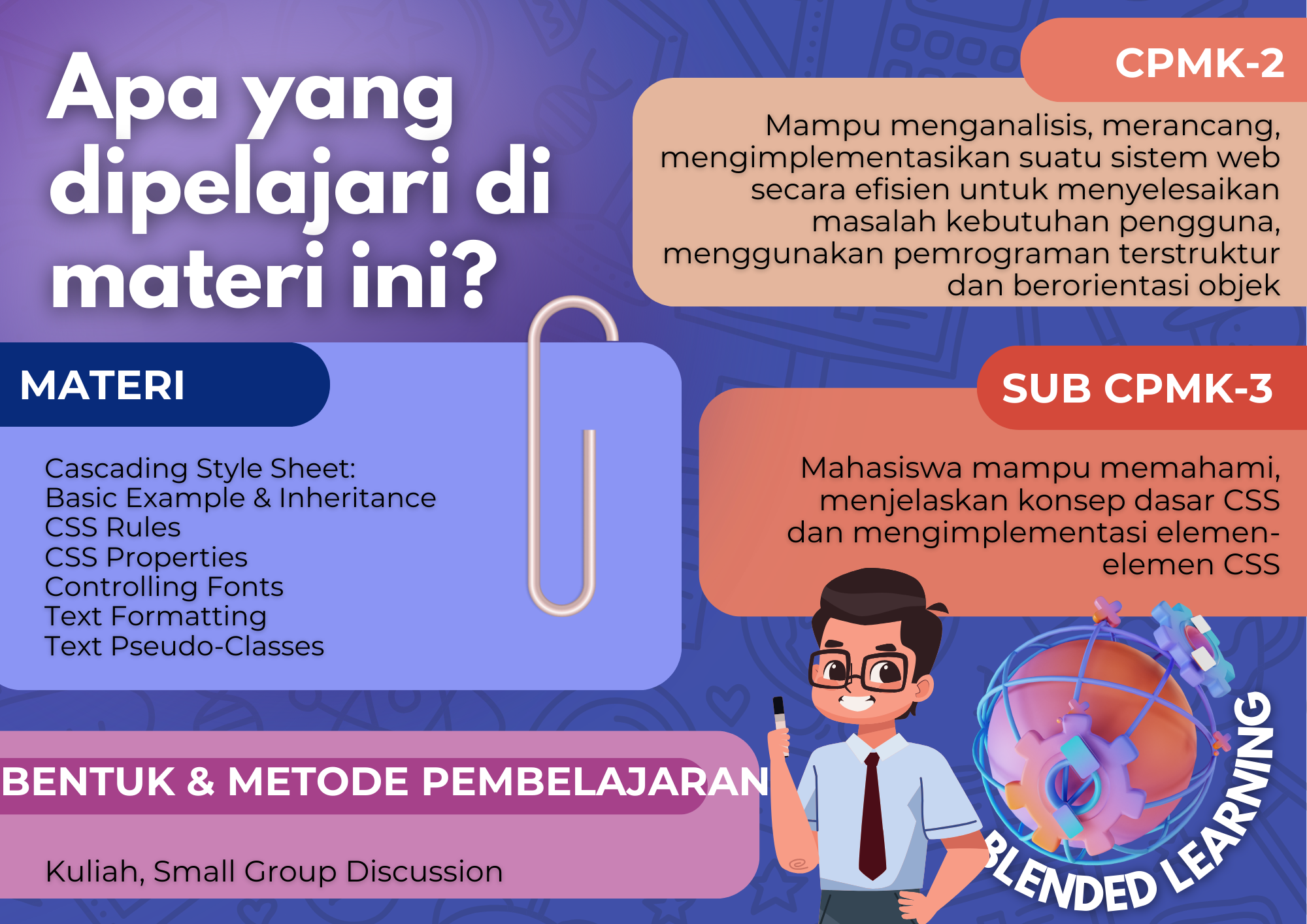 Mahasiswa mampu memahami, menjelaskan konsep dasar CSS dan mengimplementasi elemen-elemen CSS.