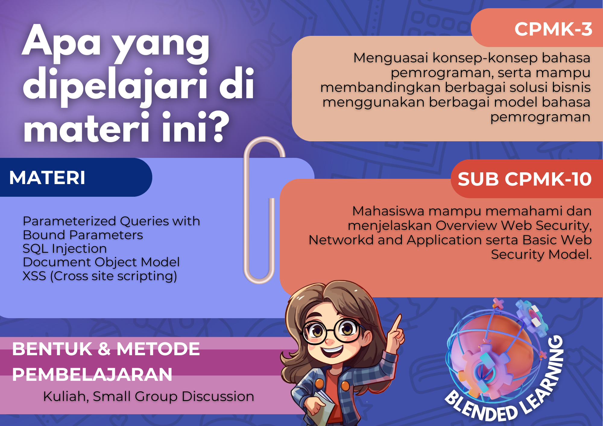 Modul e-learning ini untuk melengkapi mode pembelajaran pada mata kuliah Pemrograman Web.